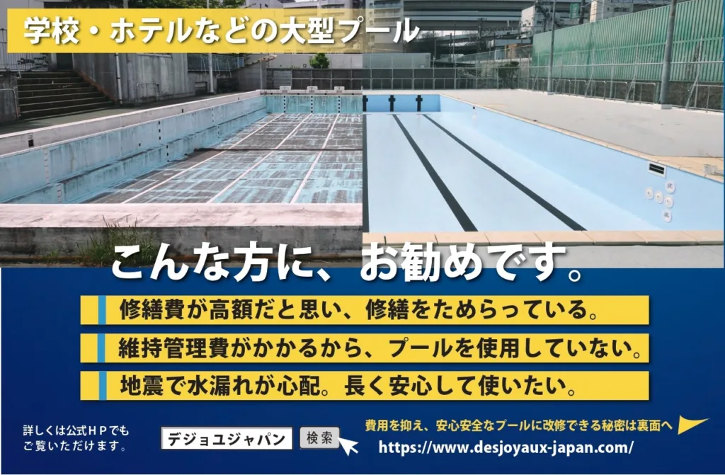 そんな老朽プールの悩みに、業界実績世界No.1のデジョユジャパンが答えます。