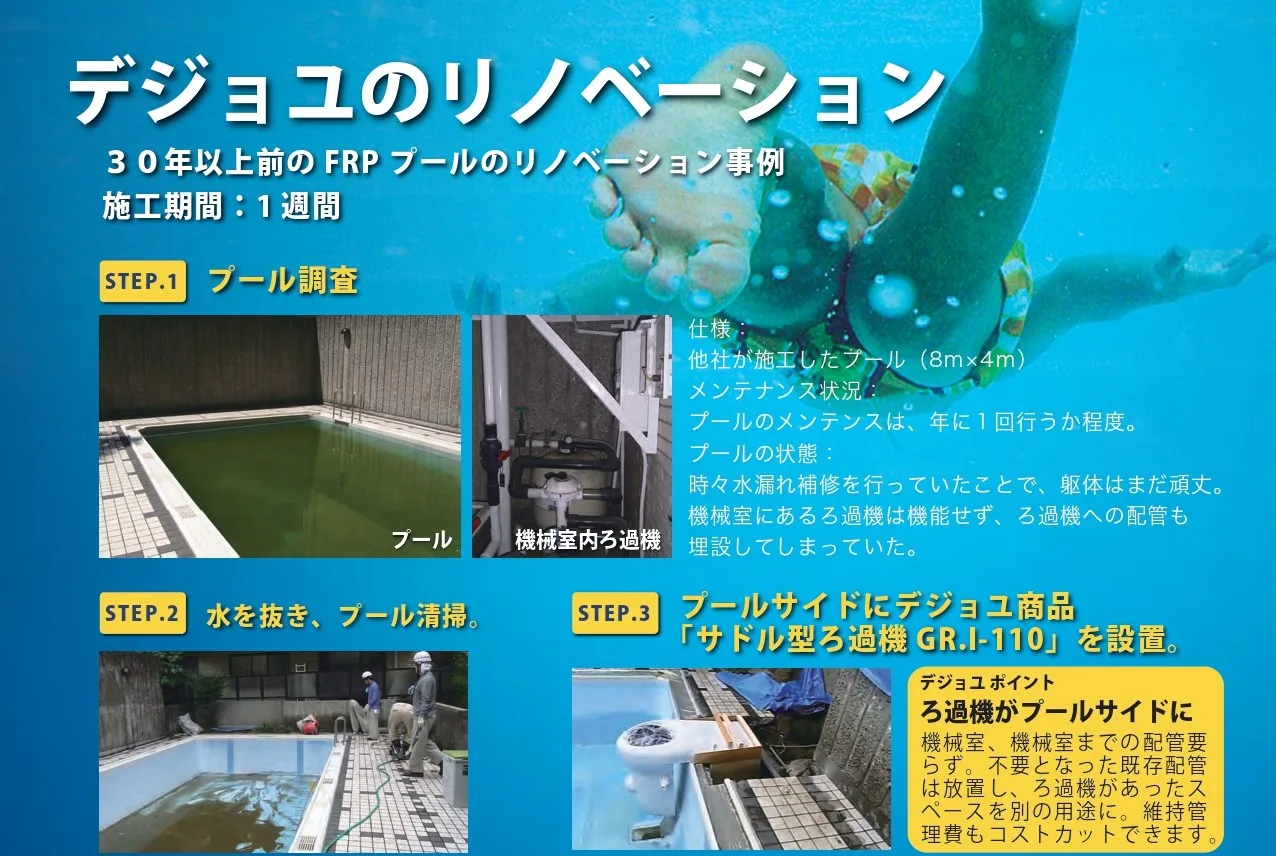 そんな老朽プールの悩みに、業界実績世界No.1のデジョユジャパンが答えます。